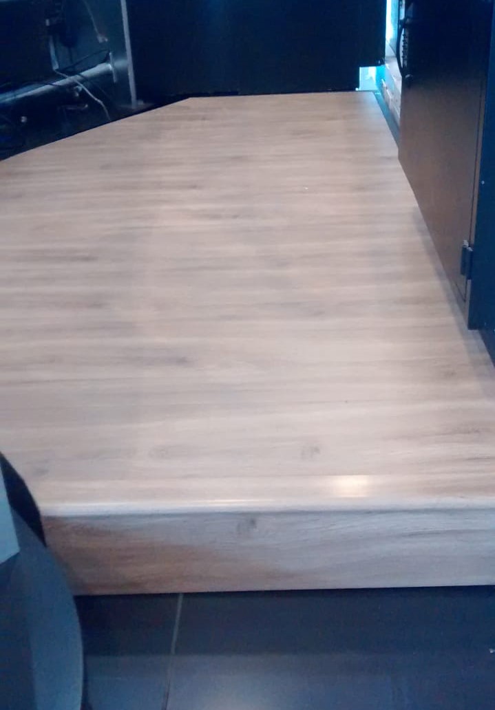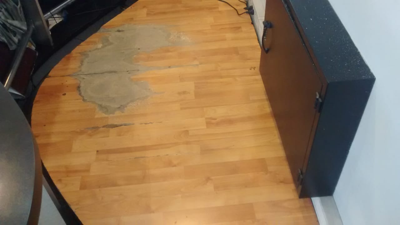 Revestimiento total de la tarima con un piso 8mm Alto Trafico color "ceniza"